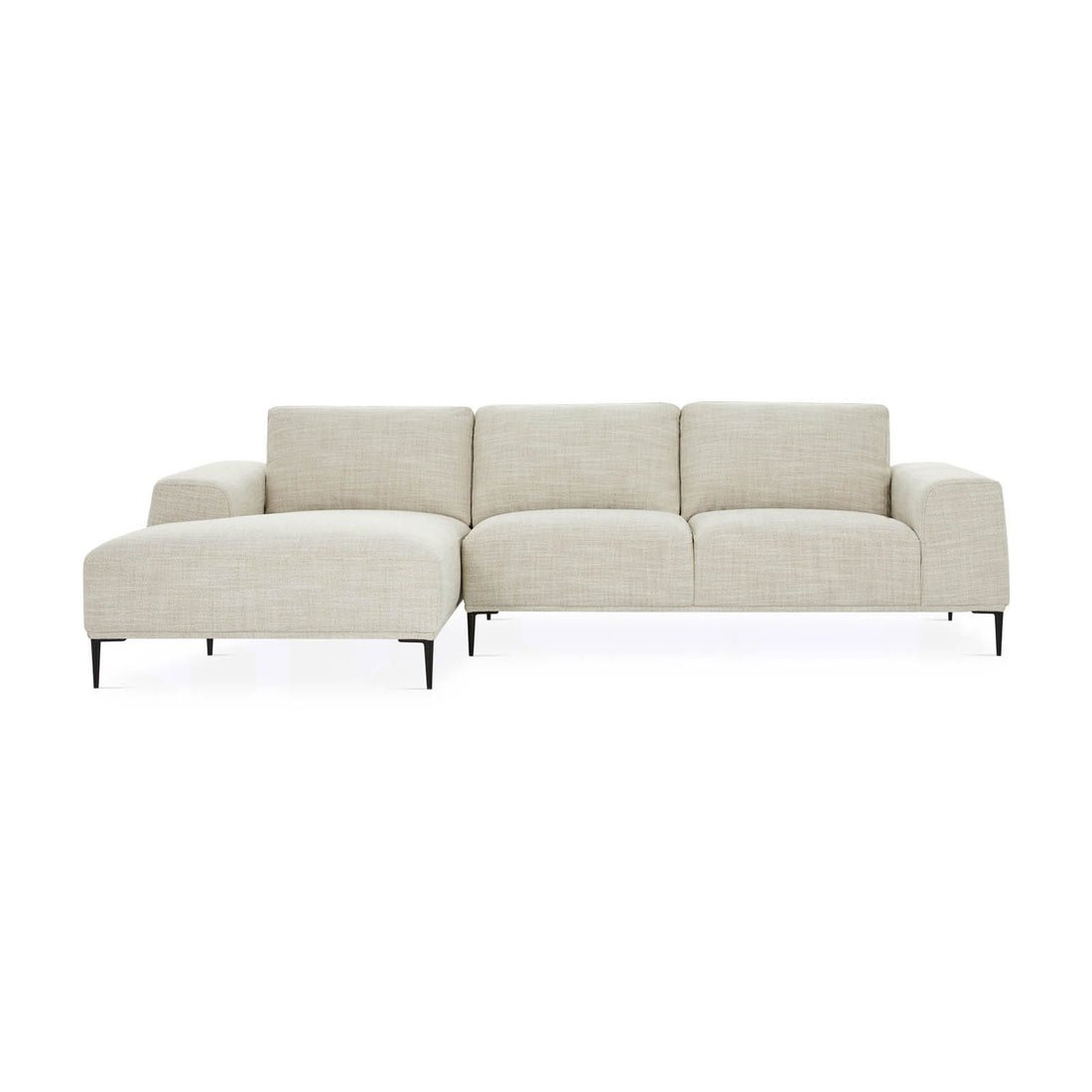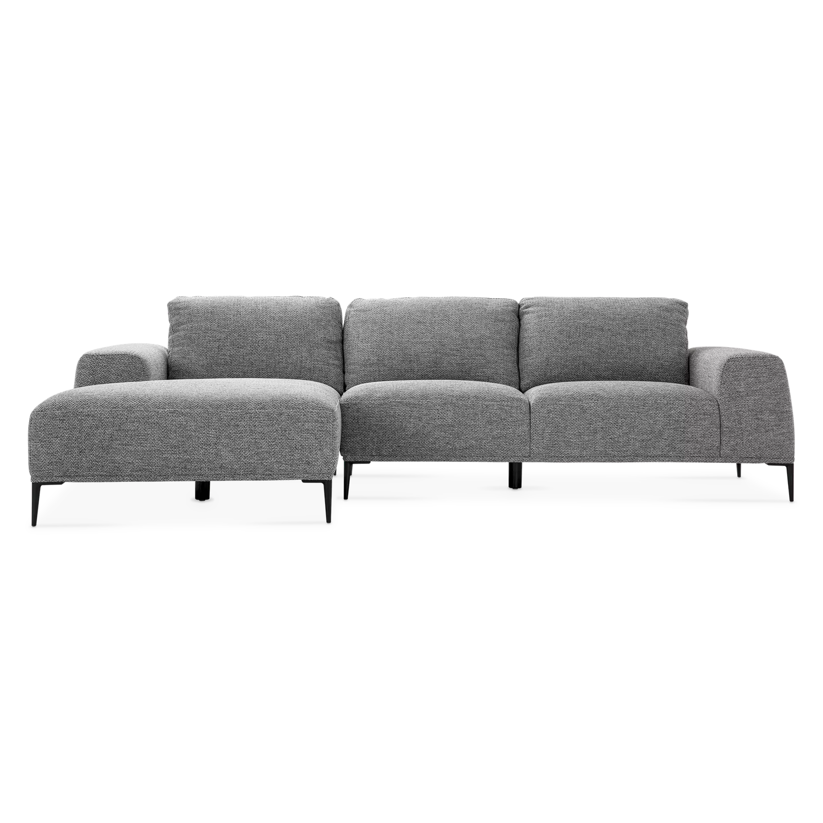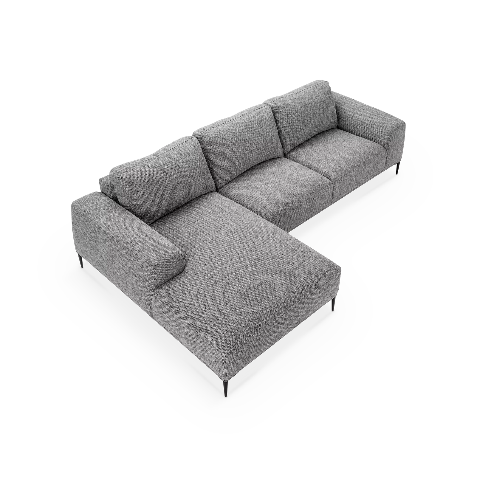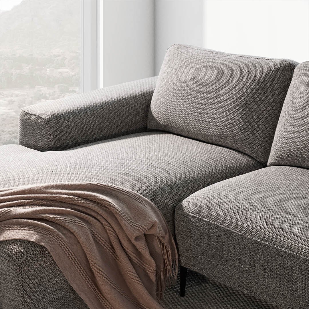 كنبة زاوية شيزلونج مودرن من ستايل هوم بتصميم أنيق ودعم شبه ثابت، بجلوس مريح وقماش فاخر باللون الرمادي الفاتح. خيار عملي وفاخر لغرف المعيشة العصرية، ضمن أفضل كنب مودرن في السعودية.
