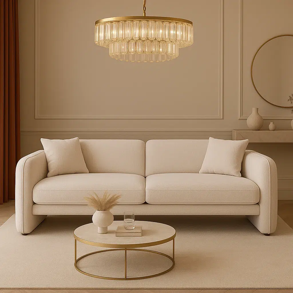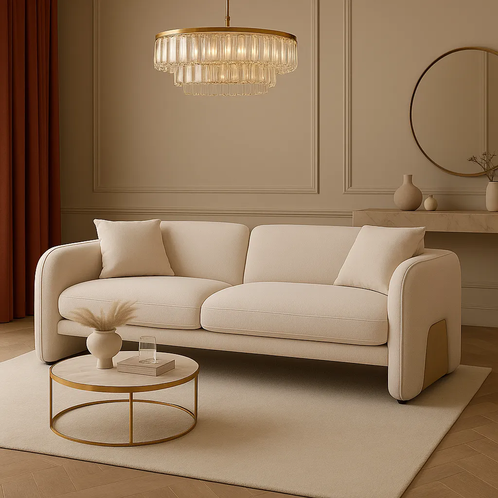 كما أن اللونين البيج والذهبي يجعلها سهلة التنسيق مع باقي قطع الأثاث، سواء كانت ألوانها محايدة أو مشرقة. لذلك، يمكنك دمجها بسهولة في أي غرفة معيشة، مع إضافة لمسات من الوسائد أو الطاولات الجانبية لتعزيز أناقة المكان.