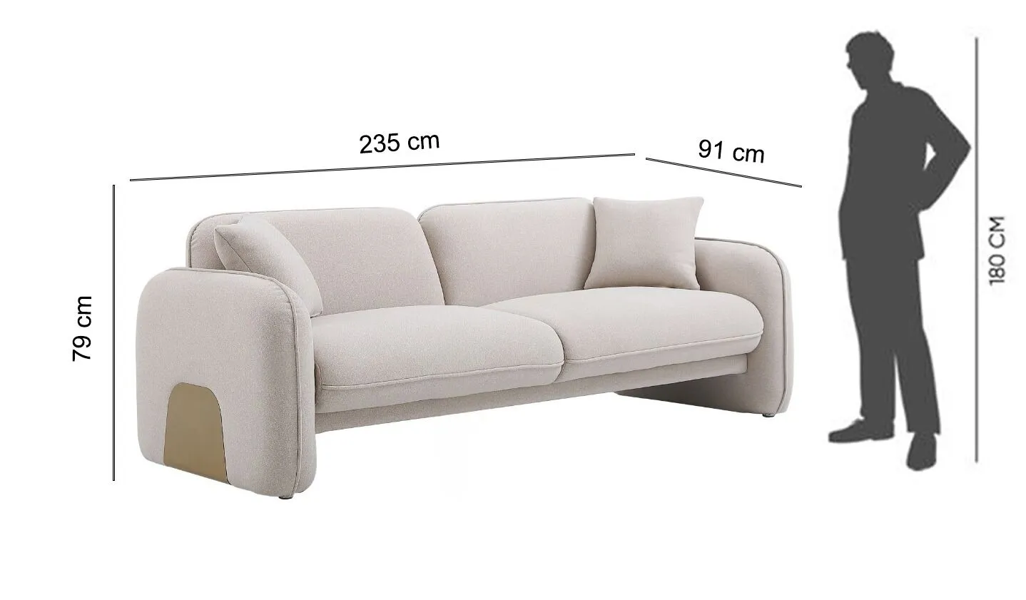 الأبعادالعرض: 235 سم العمق: 91 سم الارتفاع: 79 سم