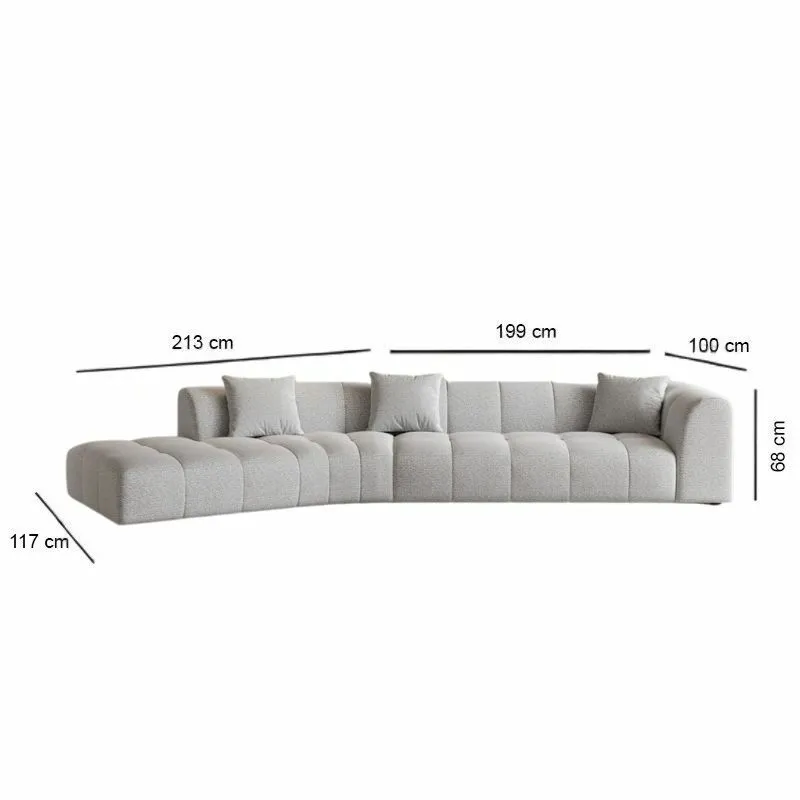 الأبعادكنبة بدون ذراعين: عرض 213 سم × عمق 117 سم كنبة بذراع يسار: عرض 199 سم × عمق 100 سم الارتفاع الكلي: 68 سم